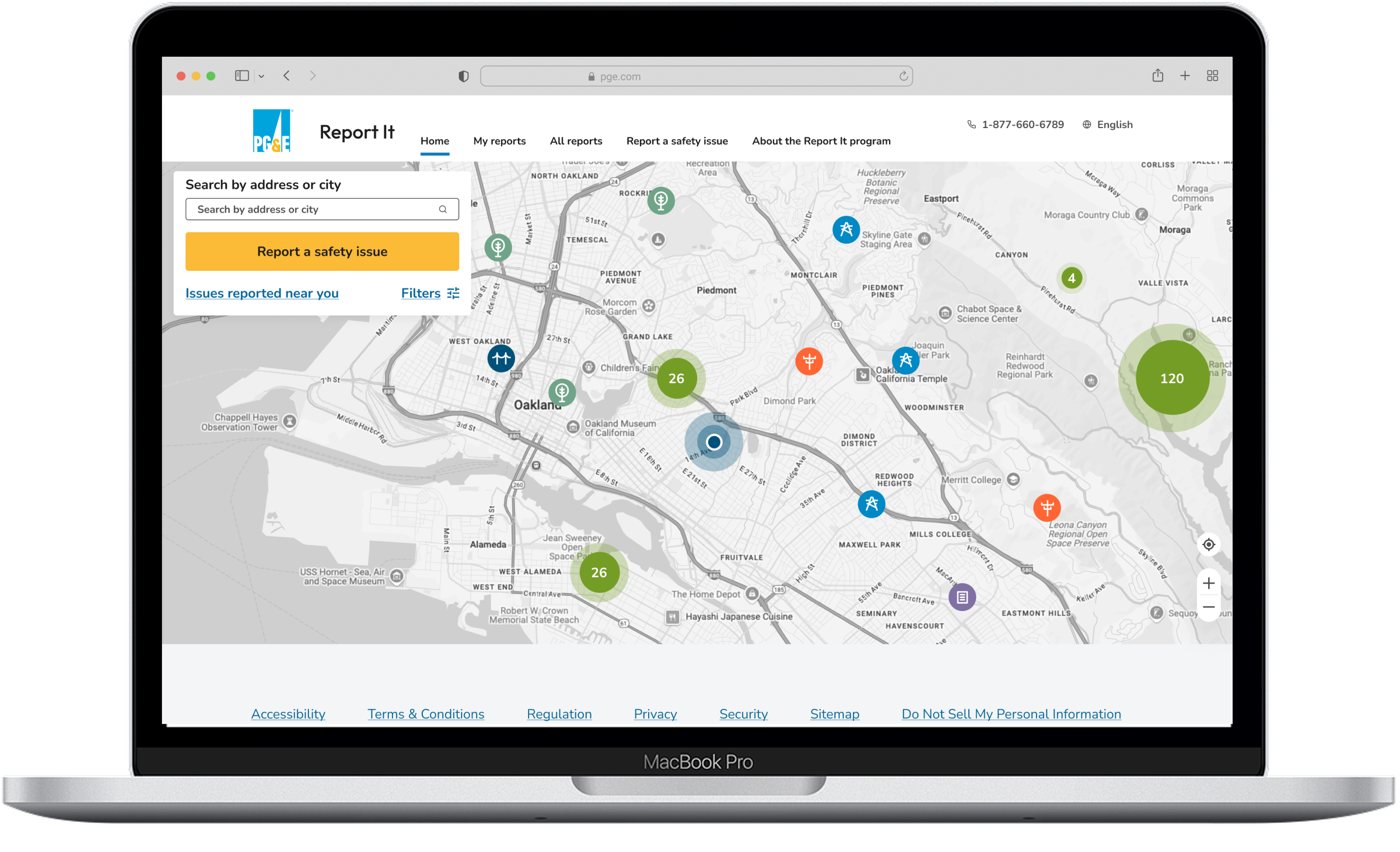 You can also report a safety concern on the Report It web page or by calling PG&E at 1-800-743-5002. You won’t be able to use Report It to view or track the status of the issue if it’s called in.