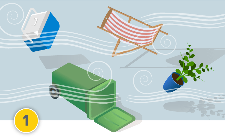 Bring in or secure garden furniture, decorations and other loose items that can become projectiles in high winds.