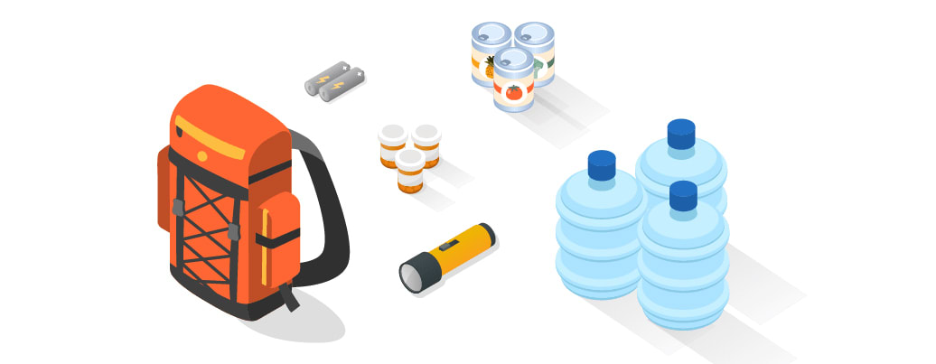 Pack an emergency supply kit with nonperishable food, one gallon of water per person per day, medications, flashlights, and batteries.