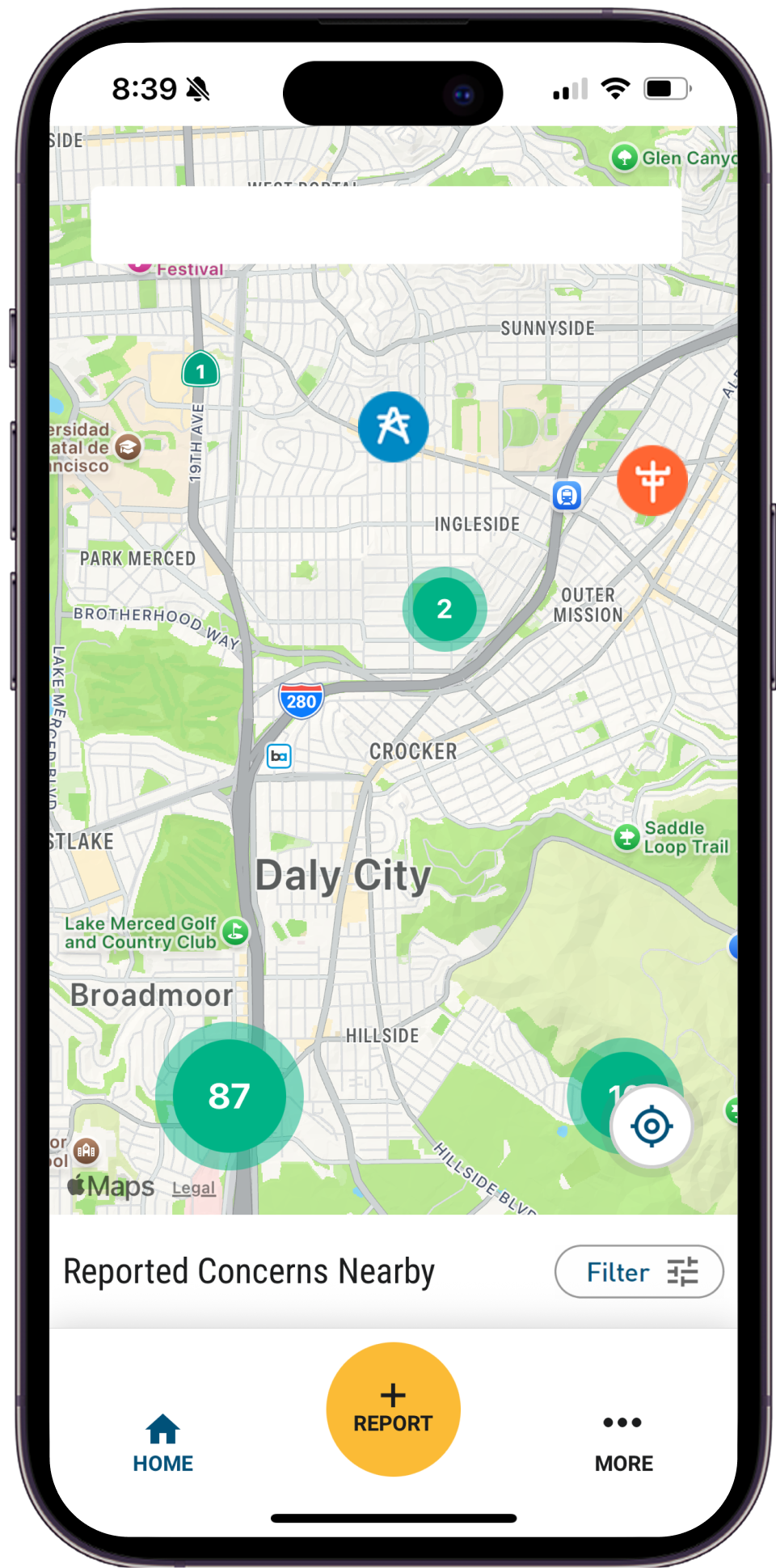 You can view reports submitted by others to see the issues that have been reported in your area. View reported concerns on a map on the Report It web page or on the mobile app.