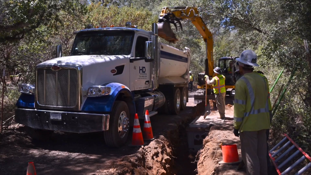 Crews move 5.3 miles of power lines underground to reduce wildfire risk for a more reliable and resilient system. This project also saves money and helps customers by giving away trench dirt instead of hauling it to a disposal site.