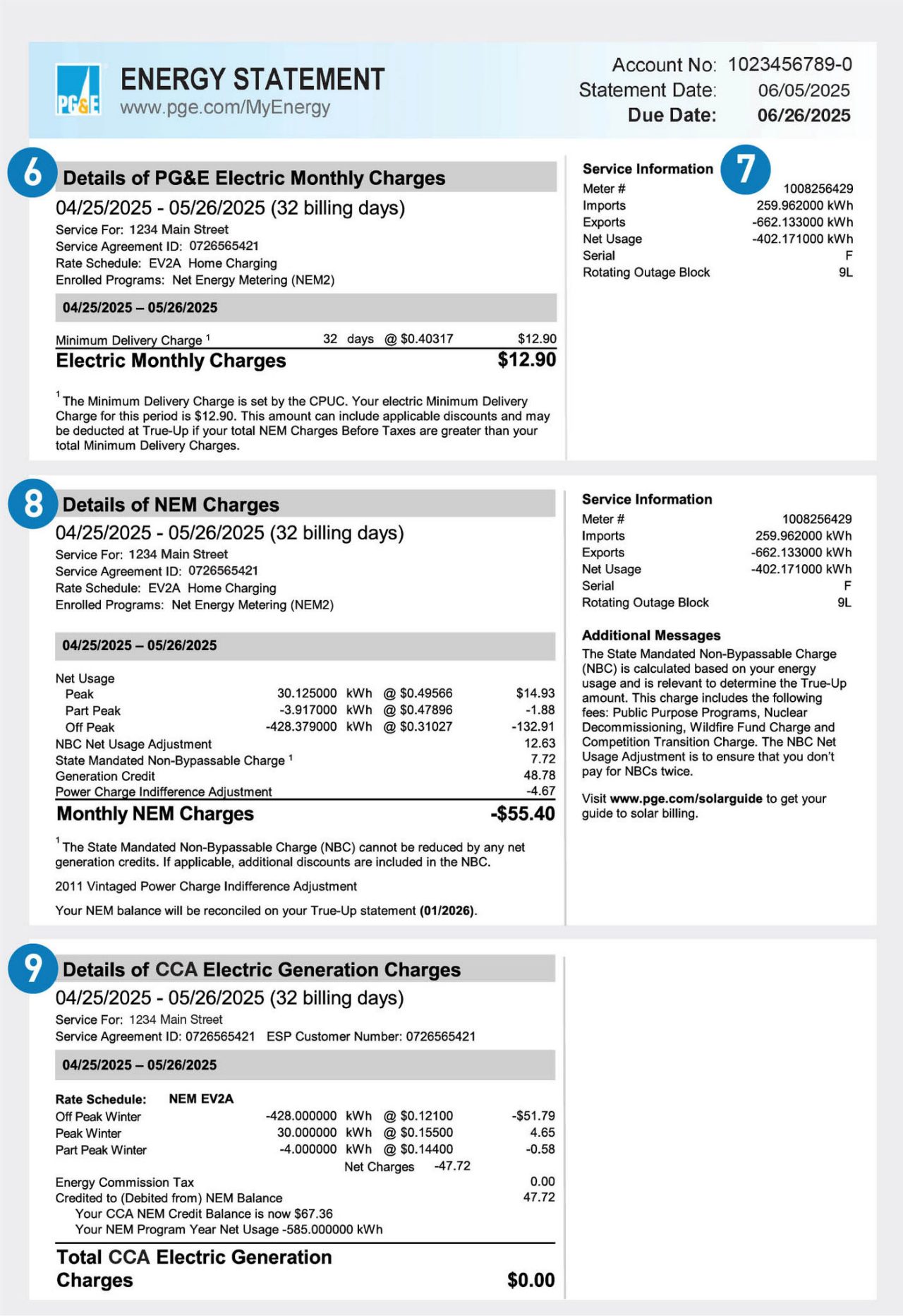 វិក័យប័ត្រខាងក្រោមគឺជាឧទាហរណ៍សម្រាប់អតិថិជននៅលើ Net Energy Metering (NEM)។ វិក័យប័ត្រពិតប្រាកដរបស់អ្នកនឹងប្រែប្រួលអាស្រ័យលើគម្រោងអត្រារបស់អ្នក និងកម្មវិធីណាមួយដែលអ្នកអាចចុះឈ្មោះ។