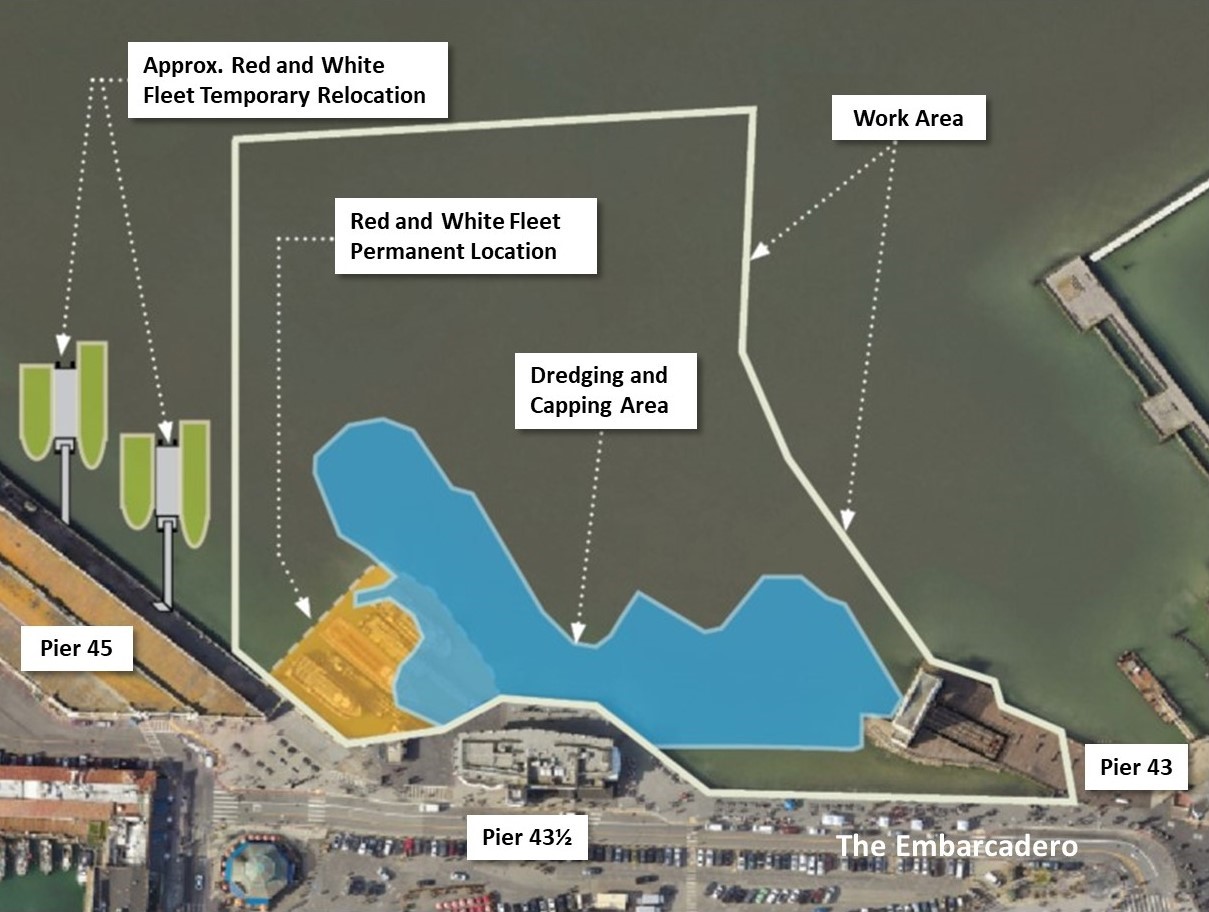 Os trabalhos de limpeza foram concluídos nos Piers 43 e 43½ em 2025, com os trabalhos restantes em três outras áreas do projeto. O trabalho de limpeza dentro de água continuará durante a janela de trabalho dentro de água de 1 de junho a 30 de novembro todos os anos. Poderá haver outro trabalho de apoio fora deste período de tempo durante o projeto de limpeza de vários anos.