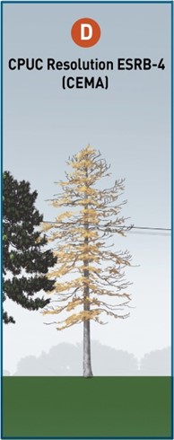 - Khoảng cách tối thiểu 1,2 m giữa các cây và dây điện quanh năm ở các Quận có nguy cơ cháy cao (HFTD) do CPUC chỉ định. Nên cắt tỉa khoảng cách 12 ft tại thời điểm cắt tỉa để duy trì khoảng cách quanh năm.