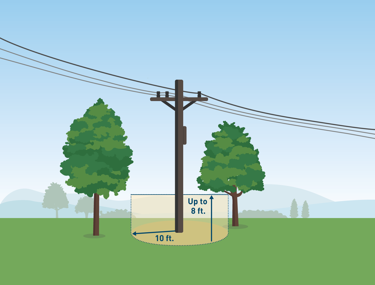 Chúng tôi làm việc để duy trì khoảng trống tối thiểu sau đây xung quanh các đường dây phân phối: